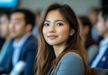 A diverse group of young professionals attend an engaging conference, showcasing their excitement and eagerness to learn and connect.