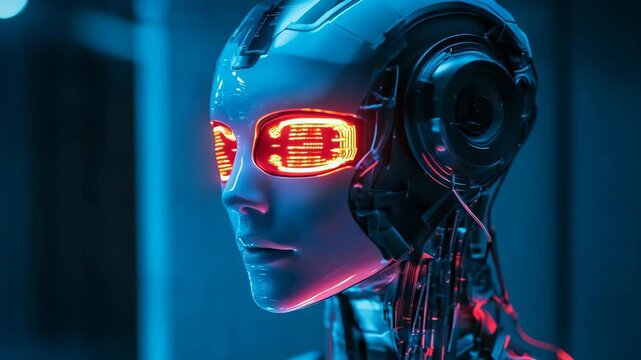 A striking portrayal of a futuristic female robot in a dynamic cyberspace highlights cuttingedge technology and innovative engineering, showcasing artificial intelligence and its diverse applications