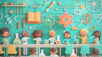 Engaging science class with enthusiastic students conducting experiments in a bright classroom
