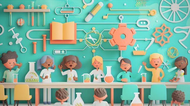 Diverse Students Engaged in a Science Experiment in Classroom Setting