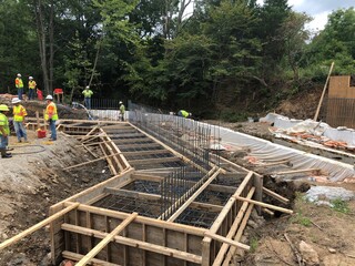 A large group of people donning protective gear sorting through mounds of trash working diligently to recycle and divert from landfills. .