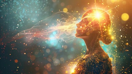 A mystical visual background designed for meditation, focusing on the concept of awakening the third eye. Radiant energy emanates from the forehead area, symbolizing inner vision, higher consciousness
