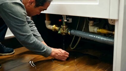 Carpenter restoring old wooden chair using electric sander and recording diy video blog