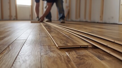 Woodworker finishes a wooden surface with a brush, applying a rich brown stain to enhance the natural grain and texture