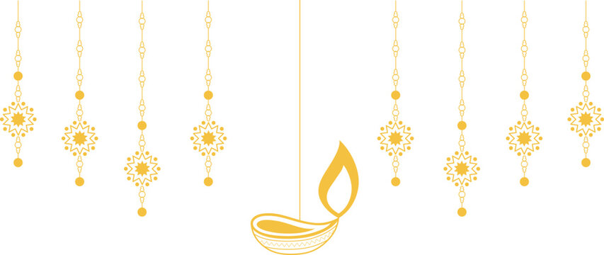 Happy Diwali banner with hanging diya or lamp vector image