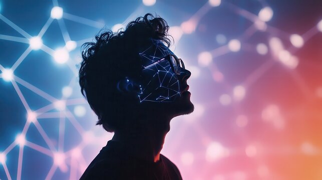 DJ in headphones, Art of a man's profile with headphones, a silhouette of her head and brain visible, showcasing a DJ in action