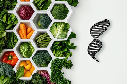 A Concept of Fresh Vegetables and DNA Presented in a Modern and Creative Design Style