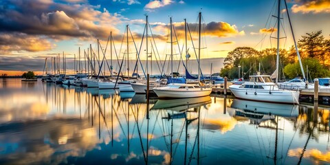 Cozy sailboats docked at marina Generative By AI, relaxed, sailboats, water scene, docked