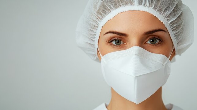 Focused woman in protective gear showcases dedication in a medical setting, emphasizing safety and professionalism in healthcare.