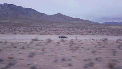 Drone footage following Dodge Challenger near Red Rock Canyon, United State