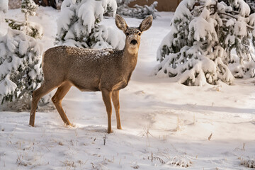 USA, Colorado, Woodland Park. Mule deer doe in fresh snow.
