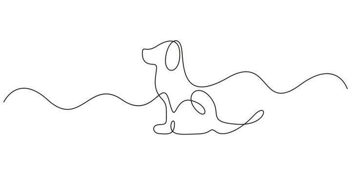 Cute dog, pet online continuous hand drawn vector objects. The dog is sitting on the floor. Cute dog one line art. Vector illustration