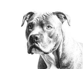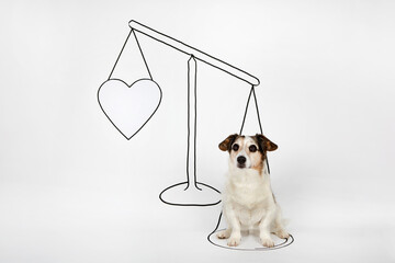 Portrait of mongrel sitting on drawn scale