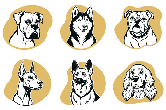 A set of dog illustrations with a variety of breeds