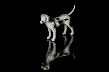 Dalmatian dog figurine sitting on a white surface, ideal for use in design projects related to dogs, pets, or animals