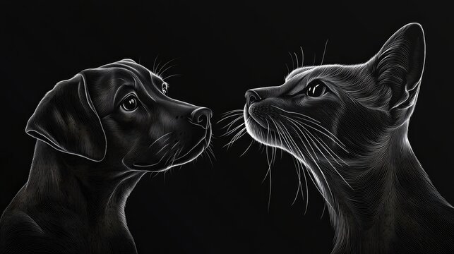 Cute dogs and elements collection. Linear graphic. Animal background.
