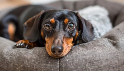 Happy businesswoman cuddling her dog while working in pet friendly office.
