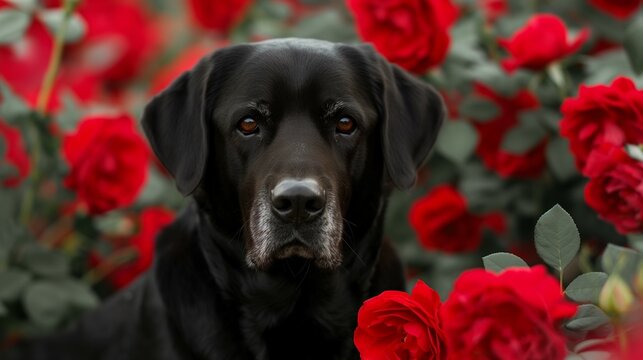 A beautiful dog holds a red rose in his mouth on a white background. Golden retriever for valentine's day. Postcard for congratulations with a pet.