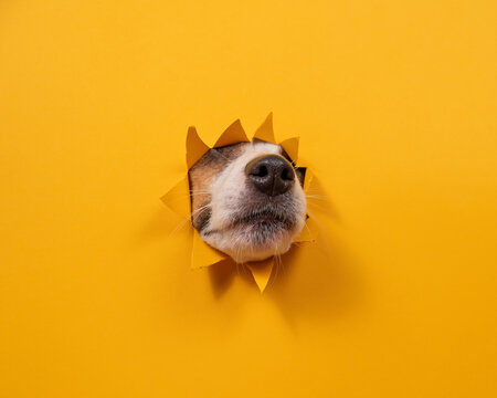 Dogs mouth. Painted dog face with delicious lick tongue and nose for vet emblem, care canine pet adorable puppy emotion, closed open mouth baby animal ingenious vector illustration