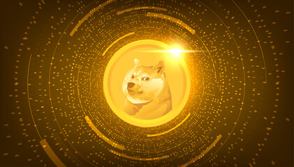Dogecoin (DOGE) coin cryptocurrency concept banner background.