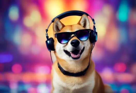 music sunglasses shiba inu doge background podcasting dog aring colorful adphones summer concept canino animal earphones fun vacation trip audio sound cool