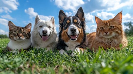 A joyful group of dogs running freely in a sunlit park, showcasing their playful nature amidst a vibrant green landscape