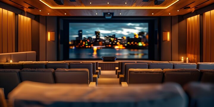 Modern Home Theater Setup with Large Screen and Surround Sound Speakers
