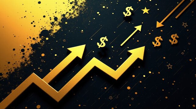 A stock illustration symbolizing National security in Black and gold, featuring diagonal shapes, Dollar signs, and rising arrows, with texture overlays and spatial complexity.