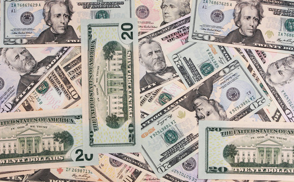 US 10 and 20 dollar bills filling the frame