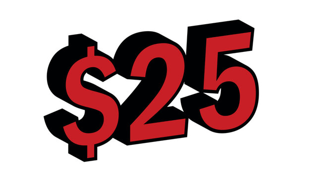 Save  25 Dollar - $25 3D red Price Symbol Offer