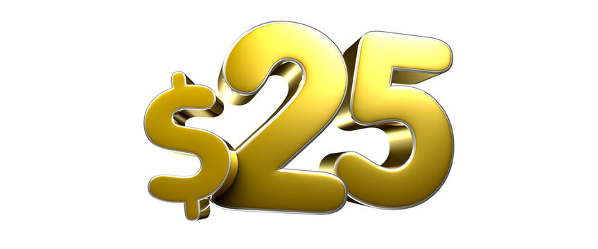 25 twenty-five Dollar usd price sale offer. 3d black