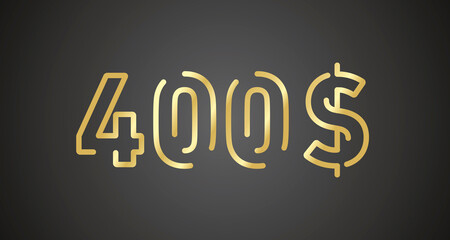 Cash back 400 dollar Percentage golden coins, financial save off. Vector illustration
