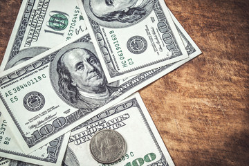 Falling dollars isolated on dark black background Slow Motion 400 fps