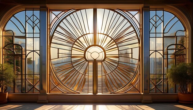 A circular stained glass window in a building, Generative AI