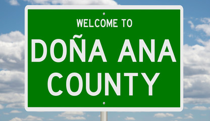 Rendering of a 3d green highway sign for Doña Ana County in New Mexico