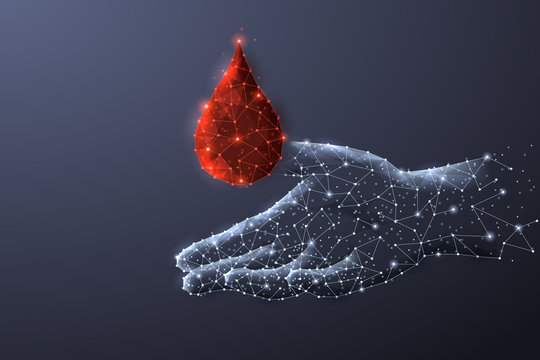 Abstract polygonal light design of blood drop in hand.