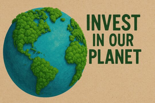 Button for Sustainability: A close-up shot of a hand pressing a button labeled "Donate Sustainability," representing a call to action for environmental responsibility and charitable giving.