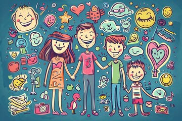 Cartoon cute doodles of parents giving encouraging words and support to their children as they navigate through life's challenges, Generative AI