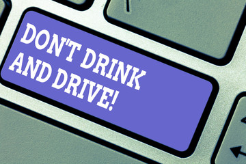 Word writing text Don T Drink And Drive. Business concept for Do not take alcoholic drinks if you are driving Keyboard key Intention to create computer message pressing keypad idea