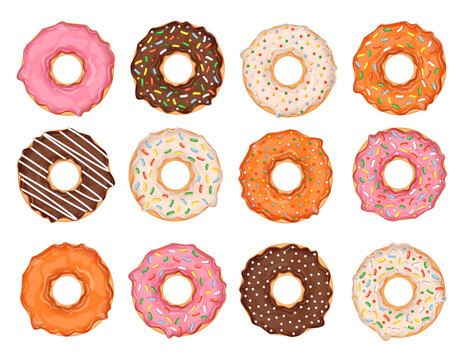Cartoon sweets. Sweet dessert, candy, cute cake, lollipop, chocolate, sugar pastry, ice cream, donut, caramel, colorful bakery, bear dragee. Vector set