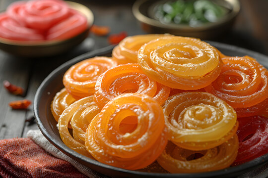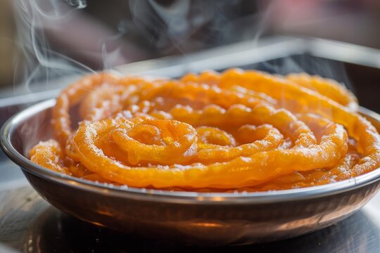 Indian dessert Jalebi a popular sweet in India Focus on subject with background blur