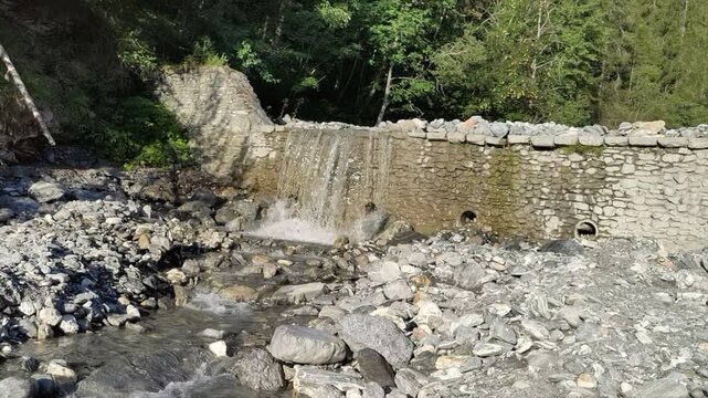 waterfall of the Dora river in the mountains around Bardonecchia,Turin Italy. High quality 4k footage