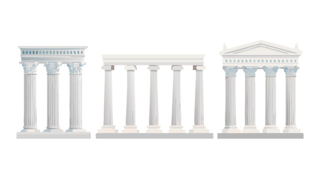 Set of mixed classical architectural columns featuring doric ionic and corinthian orders clean and detailed vertical support structures isolated on transparent background