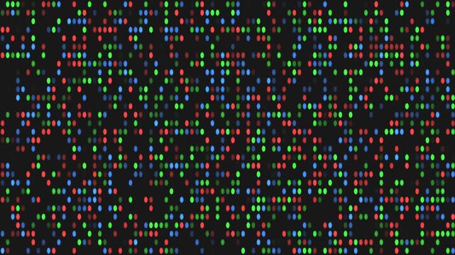 A seamless loop of a colorful LED dot matrix screen with pulsing pixel lights.