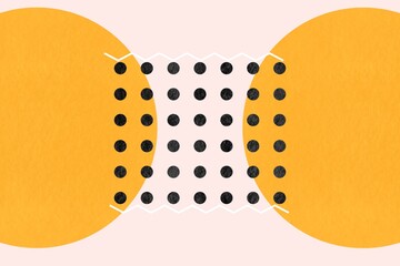 Vector illustration. Bundle of linear flat design elements for poster, book cover, frame, gift card, magazine. Simple minimalist line art wavy objects. Halftone dots, circle shapes, memphis pattern
