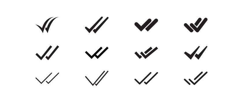 Double check line icon inside circle, received mark, black and white outline, line icons animation.
