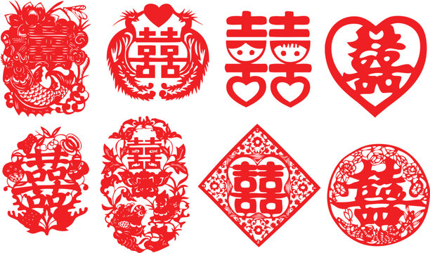 double happiness, Chinese character Xi , used as a decoration and symbol of marriage.