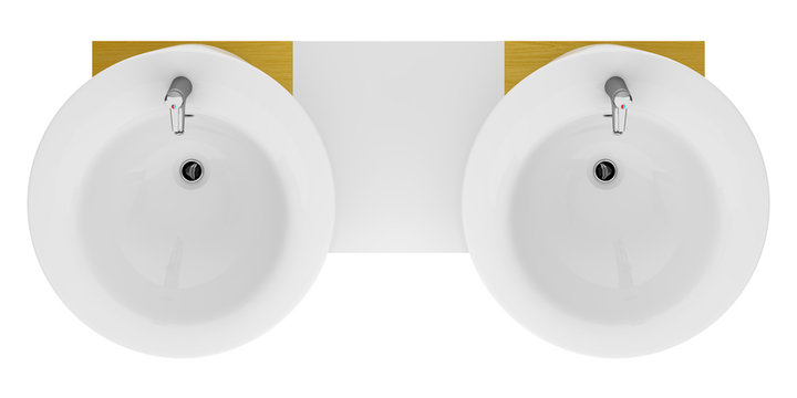 Kitchen sink with tap and double bowl isolated on white background - 3D illustration