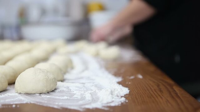closeup focusing on a baker's hands as they skillfully knead the dough