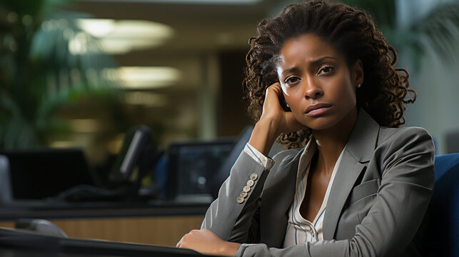 A lonely Afro girl in a classroom looks sad. Generative AI